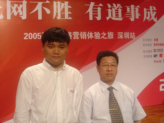 总经理钟铎民在颁奖现场与百度产品市场总监王湛(左)合影